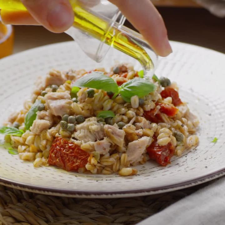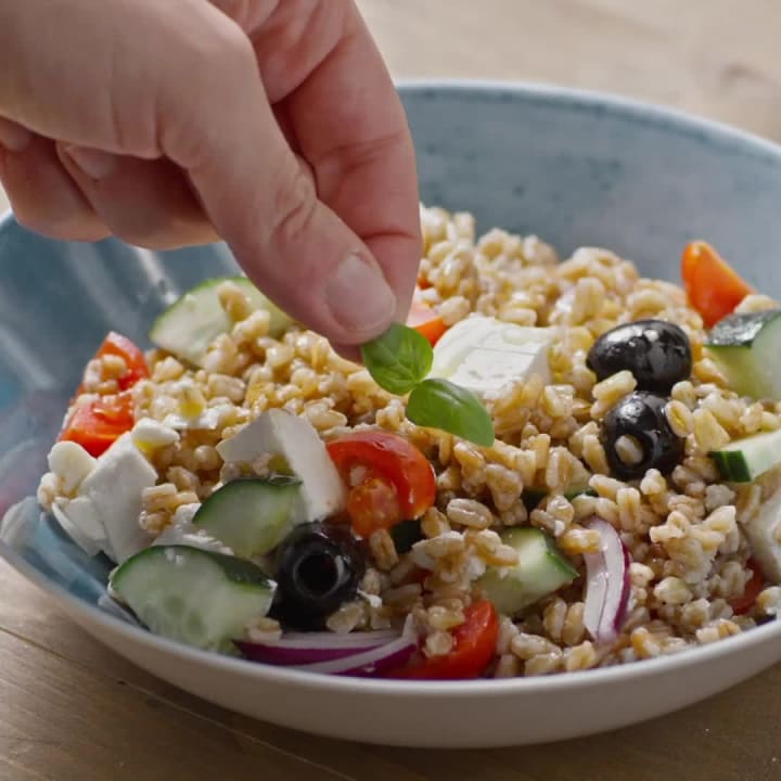La Feta è un formaggio di origine greca prodotto esclusivamente con latte di pecora, o in alternativa con latte di pecora e capra, dalla buona digeribilità e dal basso contenuto di lattosio; per questo motivo è indicata anche per chi ha una lieve intolleranza. Il suo sapore acidulo si abbina molto bene con pomodori, peperoni, spinaci, olive e erbe aromatiche in generale. Prepara subito questa insalta per una giornata in spiaggia o all'aria aperta, si prepara in un attimo grazie alla Modalità Cuoci riso.