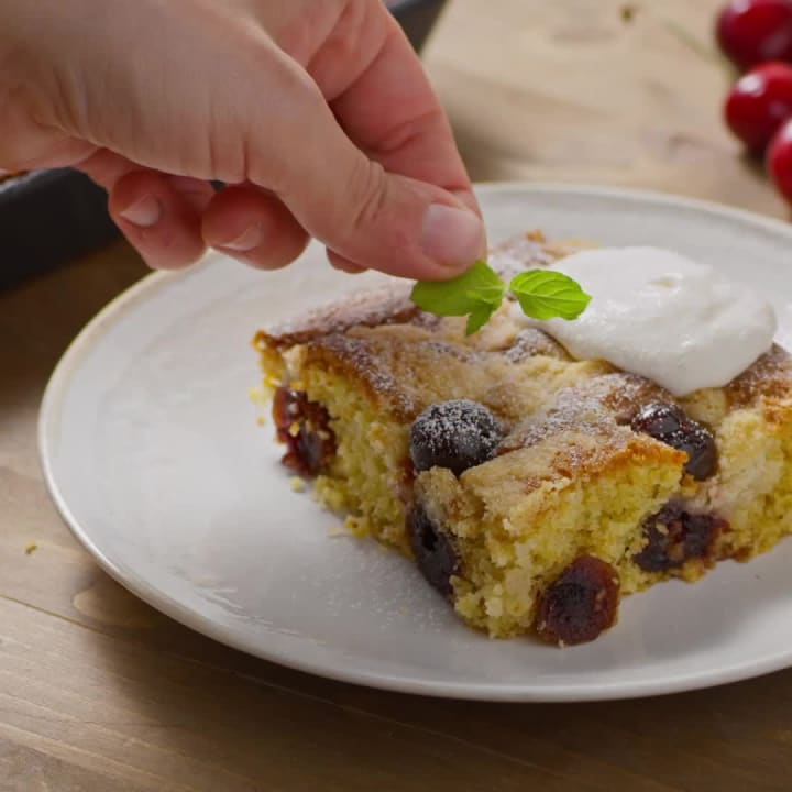 Per preparare questa delizia alle ciliegie abbiamo utilizzato una Rockstar, la teglia rettangolare "Ben", disponibile su bimbyshop.it. E' ideale per dolci come questo ma anche per tante altre preprazioni come pizze, focacce, spiedini, secondi di carne e pesce gratinato. Grazie al materiale stoneware di alta qualità, combinato ad un design moderno e naturale, otterrai un risultato sempre perfetto! Trova su Cookidoo® la collection dedicata e scopri quante altre gustose ricette puoi realizzare!