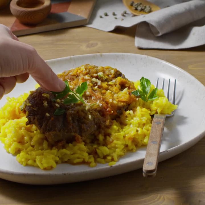 Per l’Ossobuco si usa di preferenza il geretto di vitello posteriore che è il più tenero. Le fette ricavate, il cui spessore può variare da 3 a 4 cm, sono comprensive di osso centrale con midollo. Quest’ultimo è di fondamentale importanza e costituisce l’elemento irrinunciabile del piatto perché, sciogliendosi durante la cottura insieme al connettivo che lega la polpa, contribuisce a conferire una incredibile cremosità al piatto.