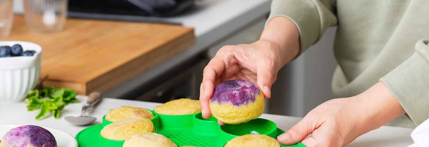 Soffici tortini ai mirtilli, dolci al cioccolato dal cuore fondente, frittatine e snack ricchi di proteine, uova in camicia sempre perfette: con la versatilità di Bimby® Nester è facile preparare ricette diverse adatte a tutte le occasioni. I pratici scomparti monoporzioni offrono porzioni individuali pronte da consumare, così è ancora più facile preparare in anticipo le tue ricette, servirle e conservarle: