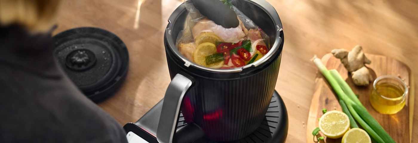 Grazie alla Modalità Sottovuoto di Bimby® puoi ricreare facilmente a casa tua una tecnica da vero chef! Divertiti a preparare capolavori culinari a base di carne, pesce, frutti di mare e verdure e ottieni risultati perfetti ogni volta.