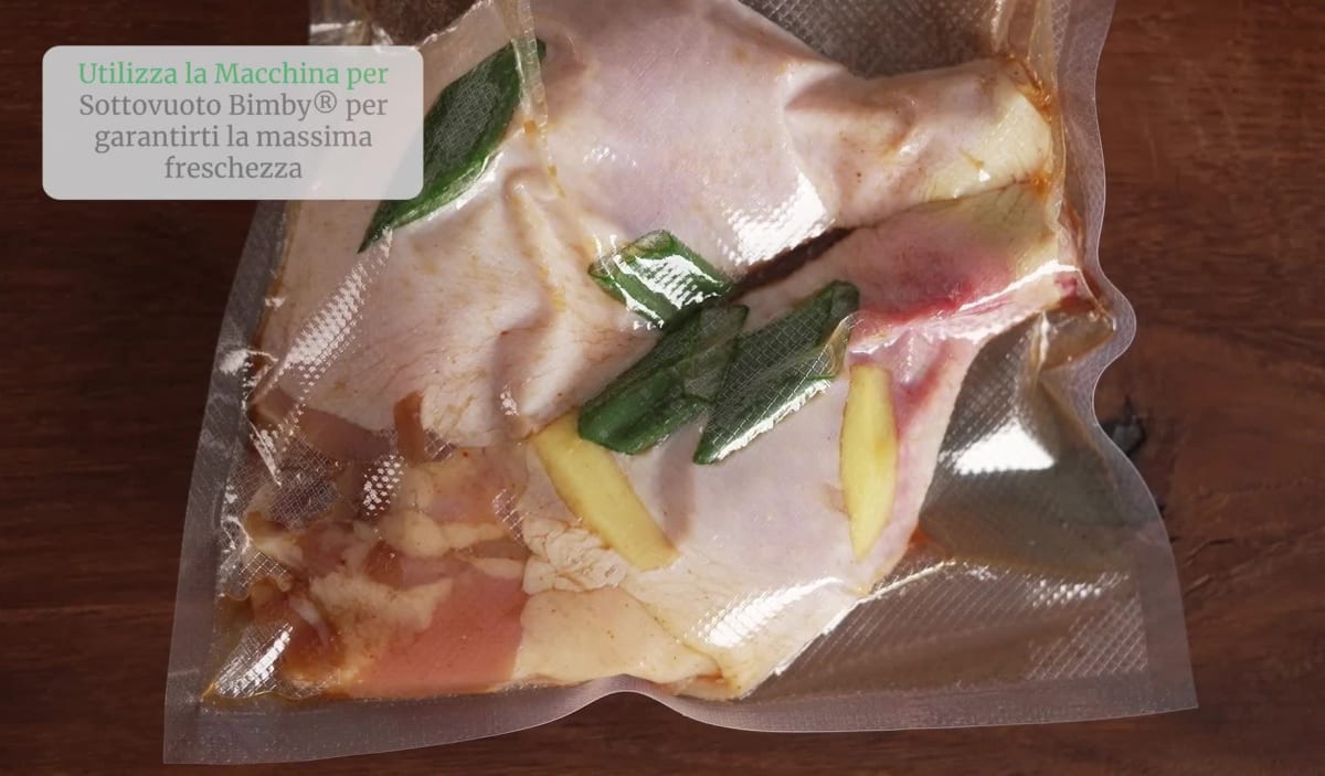 Con questa Modalità potrai cuocere delicatamente il cibo a basse temperature fino a 12 ore, mantenute costanti, permettendoti di ottenere risultati da alta cucina. La cottura al cuore del prodotto, selezionabile tra i 40 e 85°C, ti garantisce carne, pesce, verdure e frutta teneri e succosi. E non è tutto: la cottura Sottovuoto preserva tutti i nutrienti degli ingredienti ed esalta sapori e aromi riducendo al tempo stesso la necessità di condimenti e di sale in eccesso. Grazie all'accessorio Copri Lame e Pelapatate Bimby® l'esperienza Sottovuoto è completa e infallibile. Stupisci i tuoi ospiti!